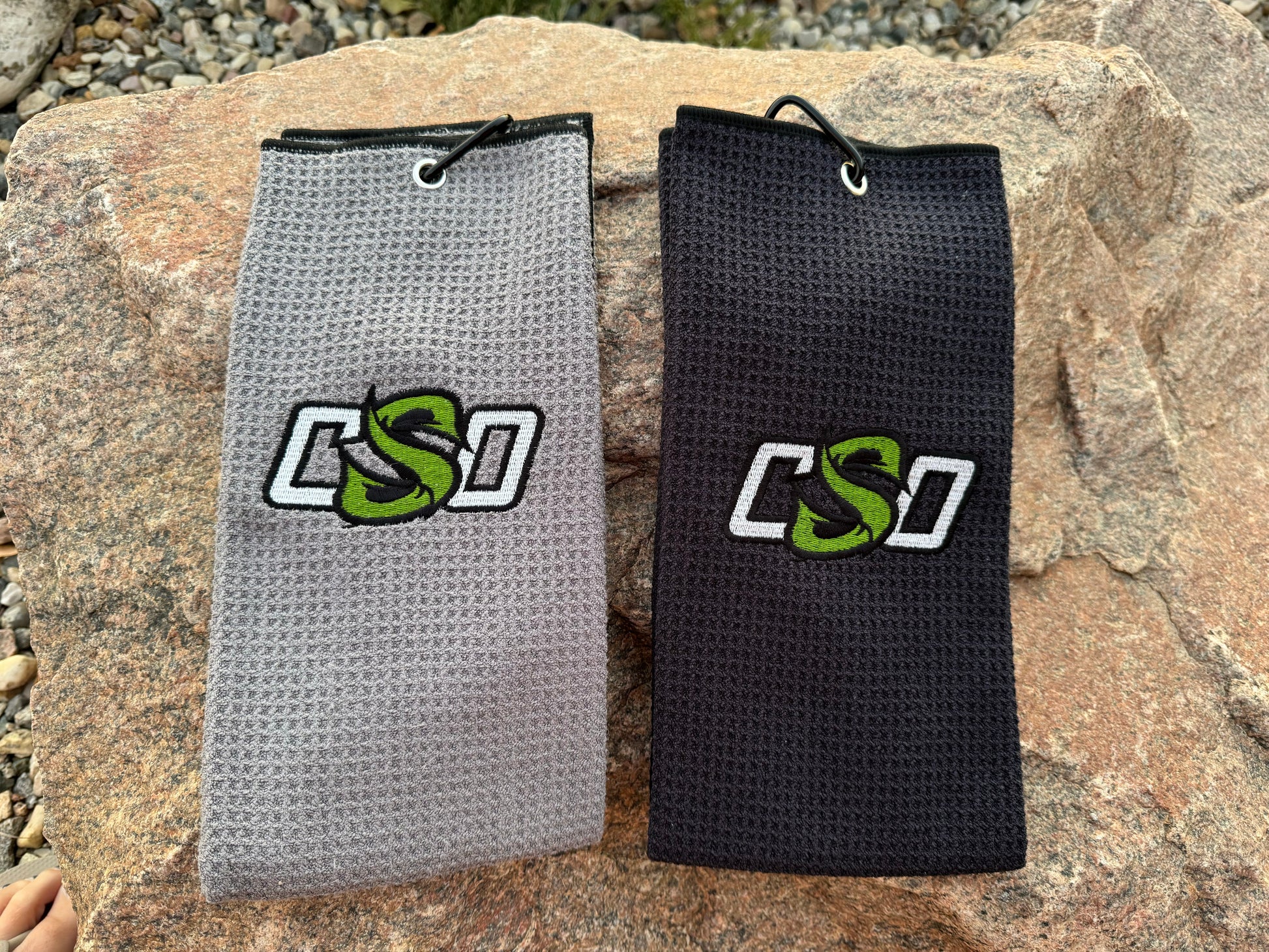 Black and Grey Fishing/Golf Towels with a Black Carabiner Clip